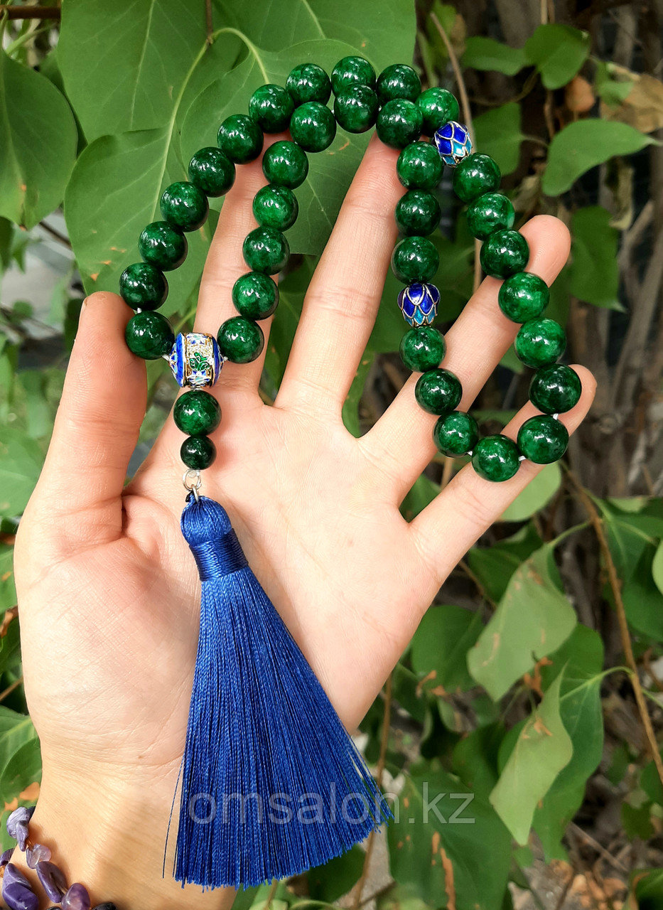 Чётки из хризопраза. Диаметр бусин 10 мм. Количество бусин: 33, разделители через 11. Материал: хризопраз, фурнитура династии Мин, шелковая кисточка.